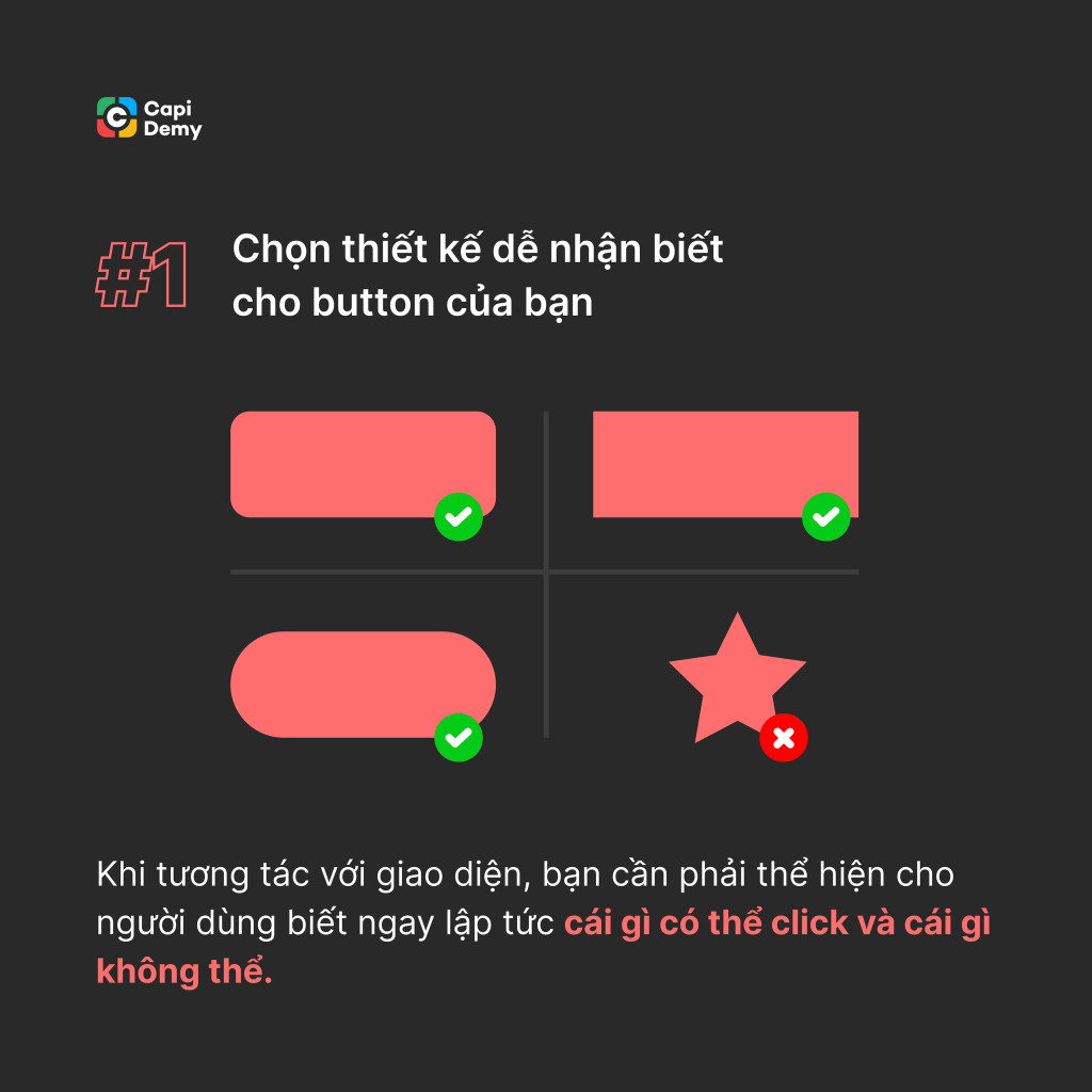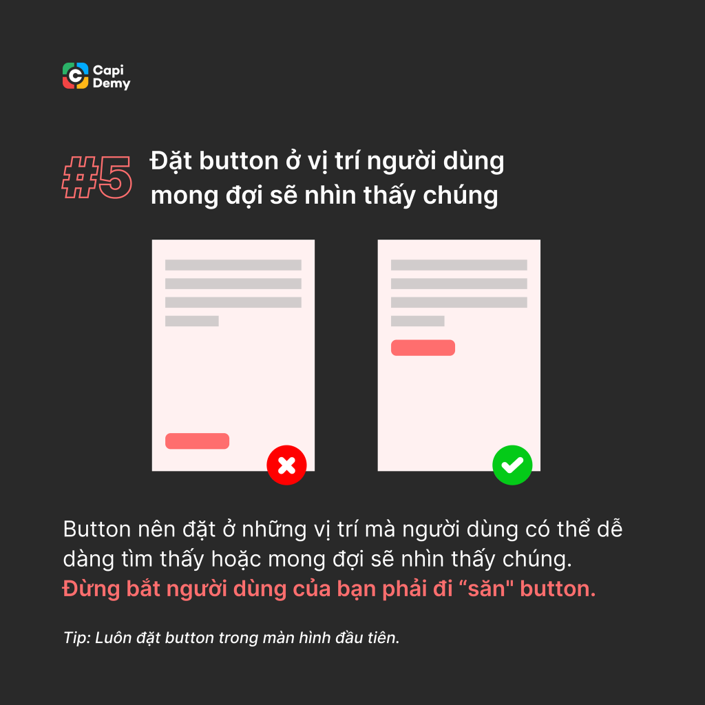 Button là một thành phần không thể thiếu cho việc thiết kế giao diện người dùng, thế nhưng không phải Designer nào cũng tường tận về button hay cách tạo ra button hiệu quả. Dưới đây chúng mình muốn chia sẻ 8 quy tắc nho nhỏ giúp bạn thiết kế button đẹp hơn, thân thiện với người dùng hơn. Cùng tham khảo nhé!