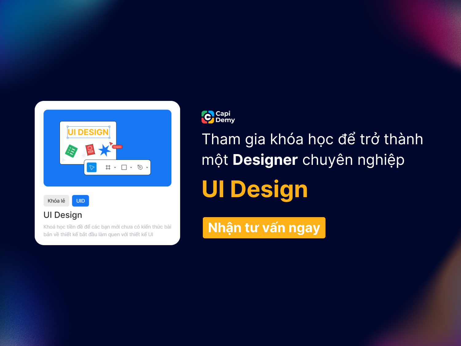 Để hiểu sâu hơn về Atomic Design và cách áp dụng phương pháp này vào thiết kế UI thực tế, khóa học UI Design tại Capi Demy sẽ là lựa chọn phù hợp với bạn. Với giáo trình được thiết kế sát với thực tế công việc, khóa UI Design sẽ giúp bạn: