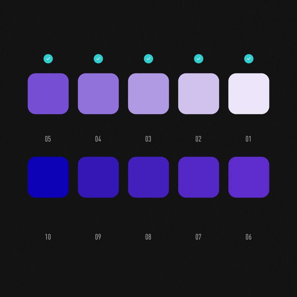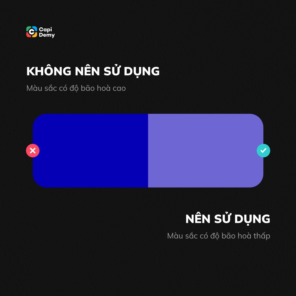 Nếu chia sắc độ bão hoà của một màu thành 10 mức, thì các màu sáng ở giữa mức 01 và mức 05 sẽ phù hợp với chế độ nền tối, giúp người dùng dễ nhìn và dễ đọc.