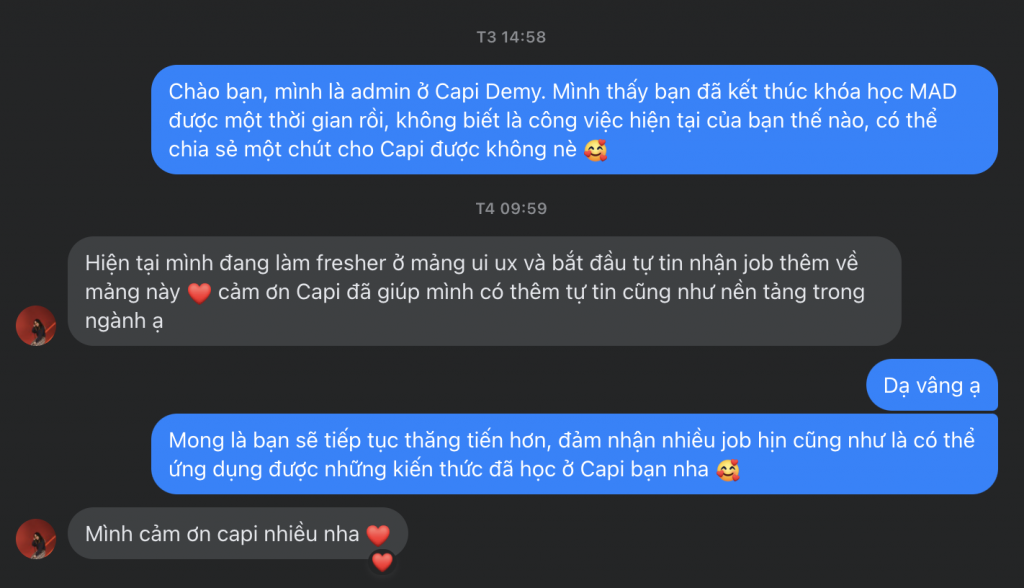 Đọc những dòng feedback từ các bạn học viên lớp MAD#45 không khỏi khiến Capi Demy ấm lòng.