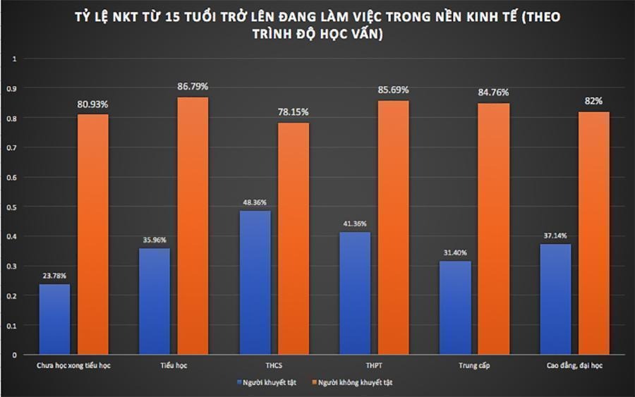 Theo Số liệu từ Điều tra quốc gia về người khuyết tật Việt Nam công bố tháng 1/2019 của Tổng cục Thống kê, "khoảng 40% người khuyết tật ở độ tuổi lao động và còn khả năng lao động, nhưng chỉ có 30% trong số đó có việc làm tương đối ổn định. Như vậy, cả nước còn 2 triệu người khuyết tật có khả năng lao động nhưng chưa tham gia lao động, chưa có việc làm". Một nghiên cứu của Tổ chức Lao động Quốc tế (ILO), chỉ ra rằng Việt Nam có nguy cơ mất 3% GDP do không tận dụng người khuyết tật có khả năng lao động trong thị trường lao động.