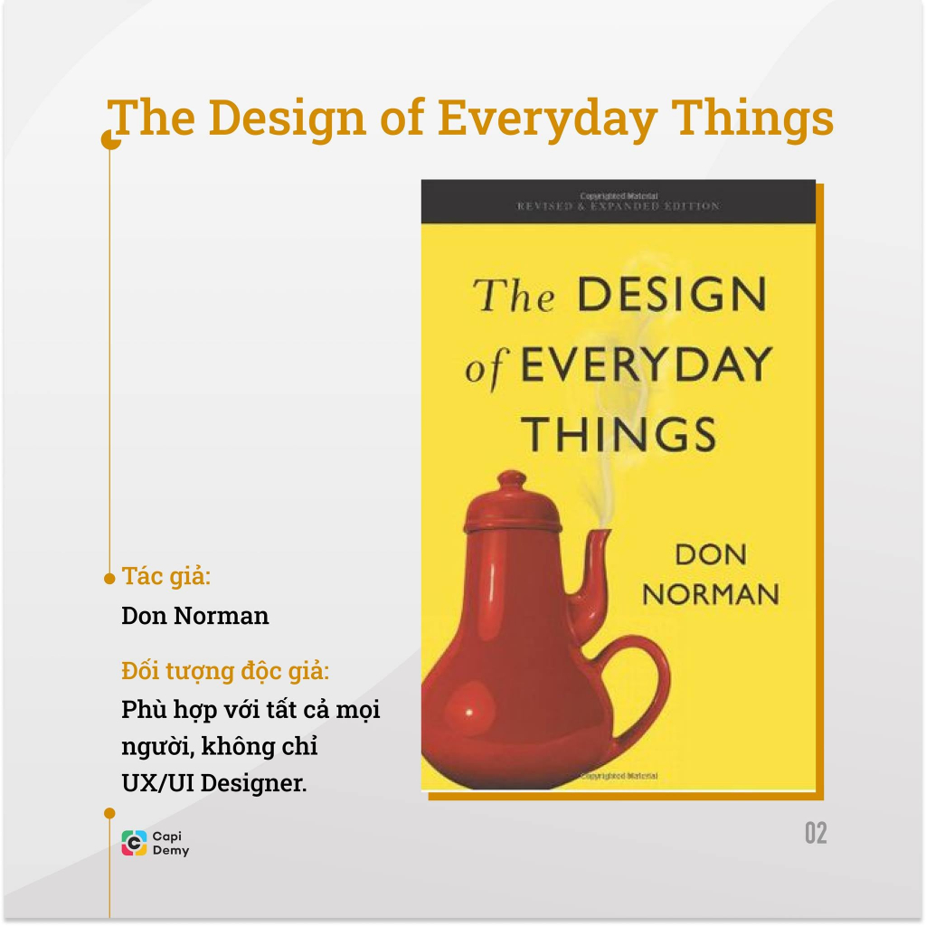 Đây là một trong những cuốn sách thiết kế UX hay nhất hiện có. Ở Việt Nam, hiện tại đã có bản tiếng Việt với tựa là "Thiết kế lấy người dùng làm trung tâm". Cuốn sách này sẽ mở ra một thế giới thiết kế mới và dạy bạn cách cảm nhận nó từ một góc nhìn mới lạ. Sau khi đọc cuốn sách này, bạn sẽ hiểu rằng thiết kế có ở khắp mọi nơi, bất kể nó tốt hay xấu.