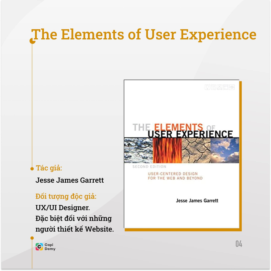 Nếu bạn muốn tìm hiểu thêm về các yếu tố về trải nghiệm người dùng thì đây là một lựa chọn tốt. Cuốn sách rất phù hợp với những người mới bắt đầu tìm kiếm những kiến thức cơ bản về thiết kế UX.