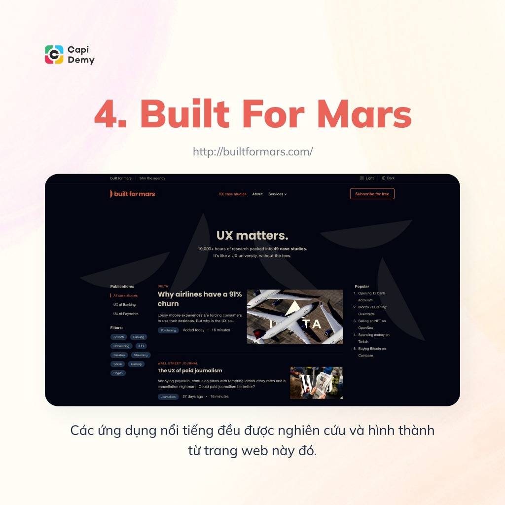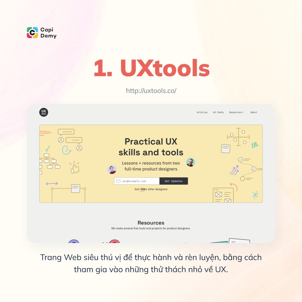 Bạn đang là người mới bắt đầu tìm hiểu và muốn thử sức sang 𝗨𝗫 𝗗𝗲𝘀𝗶𝗴𝗻, thế nhưng vẫn còn hoang mang và quay cuồng trong mơ hồ khi chưa biết bắt đầu từ đâu? Hôm nay, Capi Demy tiết lộ nhỏ với bạn 8 trang web mà UX Designer thường dùng. Những nguồn tài nguyên thú vị này rất hữu ích cho việc cải thiện nghiên cứu, phân tích trong công việc của bạn đó.