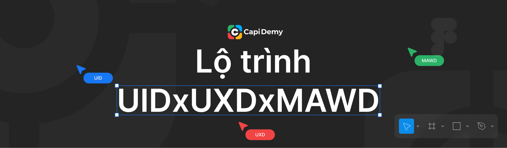 Lộ trình UIDxMAWDxUXD gồm ba khoá học UI Design (UID), Mobile App Web Design (MAWD), UX Design (UXD) tại Capi Demy.